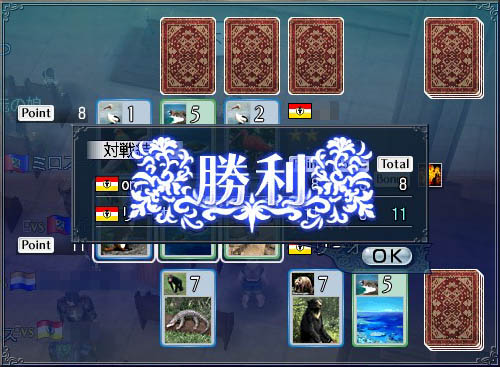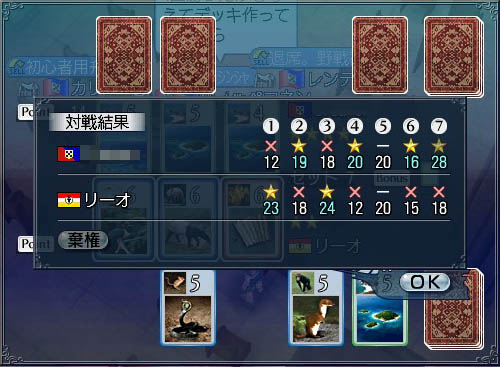 私のような素人は自分の手札を制限時間内に選び出すので精一杯ですが、玄人の相手はちゃんとこちらの手を読んでいました。コンボカードを何番目に出すか…その駆け引きで弱体化させられたり強化したり、なかなか奥深いです論戦。